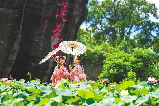 活动期间,将举办“线下+线上”文艺展演、文创作品展、抖音大赛、摄影大赛、寻宝大行动等一系列文旅活动。此外,游客还可以现场品尝到用莲花、莲梗、莲子搭配新鲜河海鲜等食材烹饪而成的健康美味,以及独具特色的莲花宴,感受视觉与舌尖的双重盛宴。