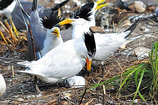 2000年,一小群中华凤头燕鸥悄然现身我国马祖群岛。2004年,我国科研人员又在韭山列岛发现了它们的繁殖种群。但目前它们被发现的全球数量仍不到一百只,它们仍是世界上最濒危的鸟类之一。 (来源:蝌蚪五线谱)