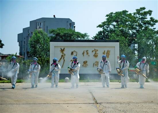 21日,北京丰台蓝天救援队对位于北京市丰台区的中国肉类食品综合研究中心进行消杀作业。此前,该中心有数名员工被诊断为新冠肺炎确诊病例 新华社发