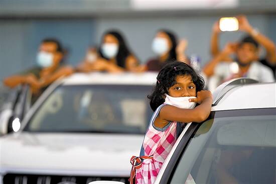 一个小女孩在斯里兰卡科伦坡汽车演唱会