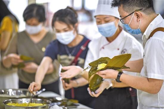 羊城晚报讯 记者周聪、通讯员粤仁宣报道:端午节临近,粽子到底是甜是咸?多年来,大家对于南北咸甜粽之“争”津津乐道。殊不知,广东的粽子可是种类多样、可咸可甜。日前,广东粤菜学院在广东省轻工业技师学院增城校区举行“粤厨闪耀 粤粽飘香”活动,现场更有粤菜师傅亲自指导,手把手教包粽子。广州咸肉粽、东莞道滘粽、肇庆裹蒸粽、台山扭角粽、中山芦兜粽、潮汕鸳鸯粽、客家灰水粽……广东地区各地方菜系特色的粽子让人大开眼界。不同地区粽子的背后,还孕育着广东不同地区的端午文化。