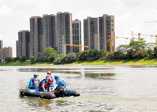黄先生随后也跳入河中,并带着一个大轮胎当做救生圈,游到离大桥150米左右时,发现只有落水者浮出水面,阿飞不见踪影。此时,茶山消防队也赶到,把落水者救了起来。从阿飞下水救人到失去踪影,整个过程不超过十分钟。