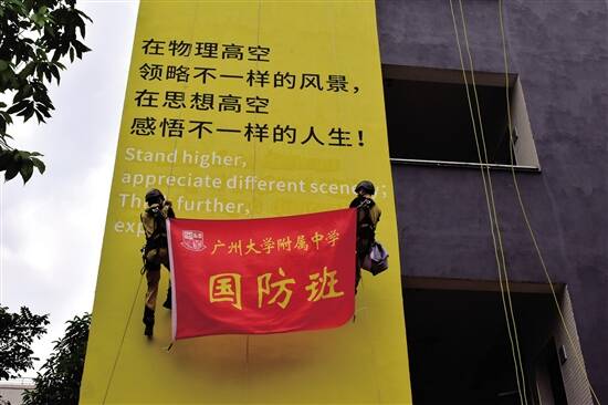 此外,广附还依托陆军特战学院、海军陆战队训练基地、海军工程大学、空军工程大学等军事基地和军事高校,聘请了10位专家作为广附教育集团国防教育的导师团,不定期到学校来给学生上课。