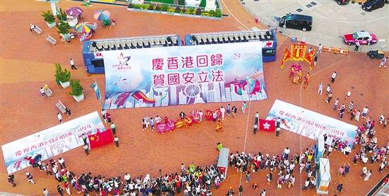 此前一天,《中华人民共和国香港特别行政区维护国家安全法》公布实施,中央在香港维护国家安全的宪制权力和宪制责任从此有了更为坚实的法律保障。在“港独”“黑暴”“揽炒”肆虐中蒙尘的“东方之珠”,迎来正本清源、重整精神再出发的历史性转机。