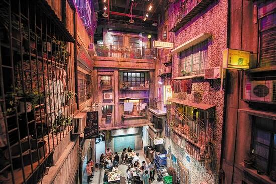 超级文和友负责人告诉记者:“我们二楼有一处做旧的瓷砖墙,从表面上看好像落了厚厚的一层灰,但顾客用手触摸时是摸不到任何灰尘的。”记者在现场了解到,很多店铺内看似像是被油烟熏黑的天花板,其实是装修时特意打造出的效果。整个商场内部呈现出的老旧、“脏乱”环境,实际却是严谨的做旧处理。超级文和友的“小心机”就体现在这一处处细节上。