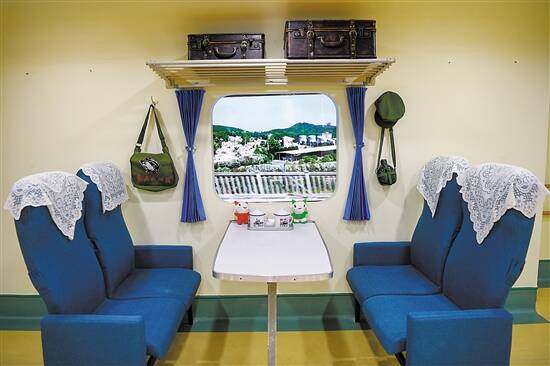 另外,专区还有火车疗法区,该区域还原了火车车厢内部的环境,屏幕上还会播放窗外不断移动的风景,非常逼真。“如果认知症长者吵着要回家,护理人员可以带他们来这里,陪他们聊聊天,渐渐地,他们可能就会忘记回家的事了。”鞠丽萍说。