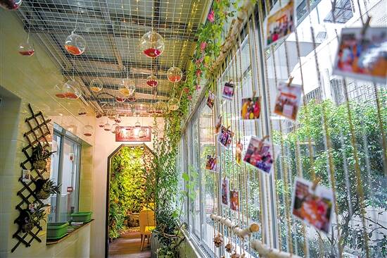 记者在感官花园看到,此处的装修极具岭南特色,植物环绕、游鱼生动,令人心旷神怡。据广州市社区居家养老服务综合示范平台主任鞠丽萍介绍,感官花园是一个集空间美学、园艺景观、心理抚慰于一体的植物疗愈空间,可以锻炼老年人的视、听、嗅、触、味五种感官。例如,老人踏入花园后,可在公共手机上根据自己的喜好挑选鸟叫、蛙声、钟声、笛声等声音,声音随即由音响播放出来,帮助听者放松心情。在空间内的操作台上,老人可亲手制作岭南押花或种植植物,锻炼触感。