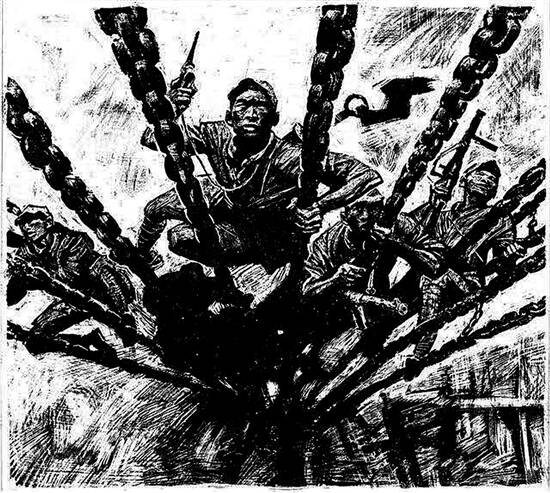 沈尧伊创作的经典连环画《地球的红飘带》(局部)(北京画院藏)