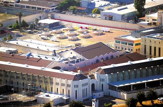 7月8日,美国加州圣昆丁州立监狱1400多名囚犯和工作人员感染新冠病毒,在棒球场上新建了紧急护理设施 人民视觉