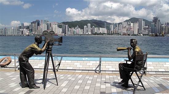 香港尖沙咀星光大道上一组反映电影工作的雕塑 图/视觉中国