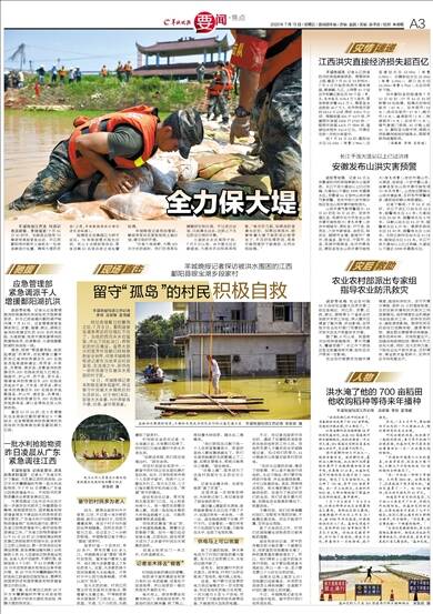 羊城晚报讯 记者从江西省防汛抗旱指挥部获悉,根据各地上报,截至7月14日11时统计,7月6日开始的洪涝灾害有南昌、景德镇、九江、上饶等10个设区市和赣江新区共99个县(市、区,含功能区)635.1万人受灾,紧急转移安置64.2万人,需紧急生活救助25.7万人,农作物受灾面积583.4千公顷,绝收108.6千公顷,倒塌房屋656户1477间,严重损坏房屋1258户2729间,一般损坏房屋4401户7896间,直接经济损失112.9亿元。灾情还在进一步统计核查中。
