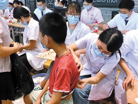 羊城晚报讯 记者林清清,通讯员宋莉萍、孔抒帆摄影报道:今年40天的超长版“三伏天”昨日正式开启!一年一度的冬病夏治“大戏”——岭南传统天灸,也在“头伏”这天拉开序幕。在省级非物质文化遗产传承基地广东省中医院,昨日“头伏”有超5000人排队参加天灸。与往年相比,今年采取预约制限制人流量,穴位也因应疫情防控做了相应调整。