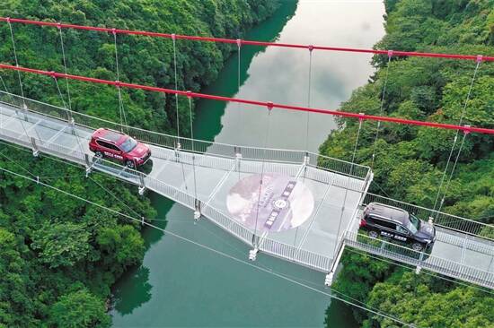 认证现场,活动主办方还把两辆越野车开上了玻璃桥。据有关负责人介绍,现场施工采用全预制进口螺栓连接,既保证了项目的安全性、结构的稳定性,又提升了观赏的刺激感。