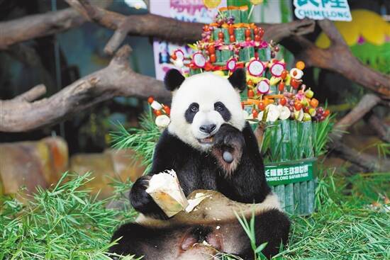 羊城晚报讯 记者黎存根、实习生杨喜茵报道:29日,长隆全球唯一大熊猫三胞胎“萌萌”“帅帅”和“酷酷”迎来6周岁生日派对。除了广州长隆野生动物世界熊猫乐园保育员为大熊猫三胞胎准备了三层“竹子蛋糕”,还有来自全国的6组同样六周岁的三胞胎家庭齐聚长隆,为“萌帅酷”庆祝生日。据悉,去年大熊猫三胞胎姐姐“萌萌”首度回到中国大熊猫保护研究中心参与国家大熊猫繁育计划;今年,欢度六周岁的“帅帅”和“酷酷”有望能加入国家大熊猫繁育计划。