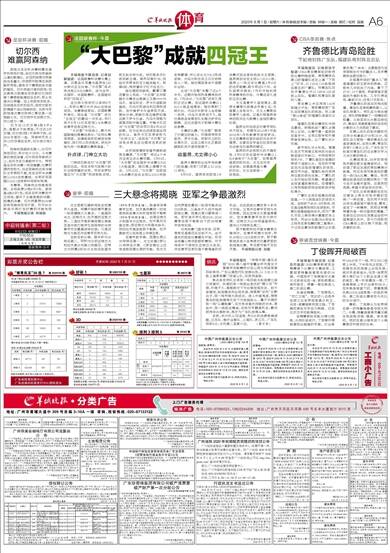 2020年8月1日/星期六/ 体育编辑部主编/责编 钟闻一 / 美编 蔡红 / 校对 温瀚