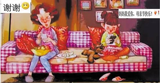 “妈妈我爱你,母亲节快乐!”带着一颗红心、一朵“玫瑰”,女儿发出这样一条信息;“叮咚”一响,带着“谢谢”和“微笑”的回信旋即收到,但抬头看去,母亲原本就在自己身旁……此景虽略有夸张,在我们的生活中却并不鲜见。