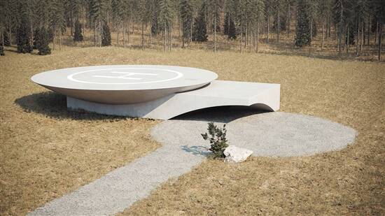 该建筑在地表上有三个简单的入口,被设计成简单的平房状,像一个现代艺术博物馆,屋顶上还有一个172平方米的直升机停机坪。从入口进入室内后,往地下走便是一个巨大的混凝土结构。内部设计有生活空间,至少可以为两到三个有孩子的家庭提供舒适的住宿,有水处理系统、发电机和电气设备,在最底部还有一口水井。设计者希望,无论地球表面发生了什么,都不会影响这个地下掩体建筑内的生活。