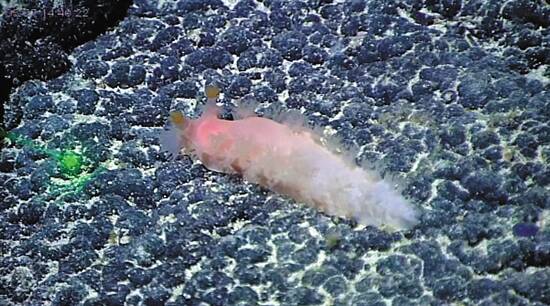 首次在西太平洋发现的深海海蛞蝓(又称海兔),隶属腹足纲、裸鳃目、三歧海牛科。2019年发现于西太平洋卡罗琳海山970-1262米深的岩石底,体长达12cm,前部呈粉红色,以红珊瑚为食。