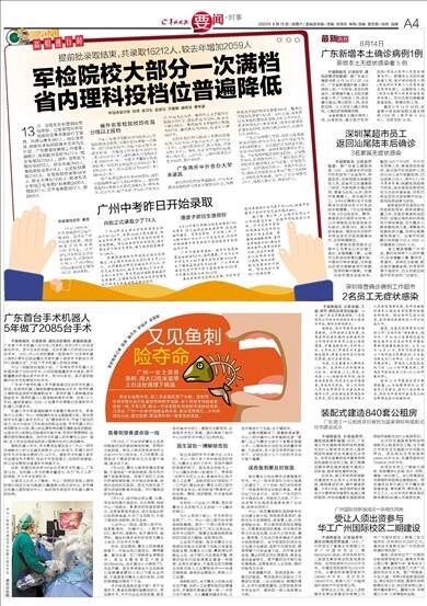 13日,省招生办对提前批军检院校、公安院校和非军检院校征集志愿进行了投档,共投出考生482人。经征集志愿,提前批本科院校基本完成招生计划,广东提前批录取工作结束。据统计,提前批共录取16212人,较去年增加2059人。其中,空军招飞院校录取55人,较去年减少60人;军检院校录取614人,公安院校录取2313人;非军检院校录取6818人,较去年增加1496人;教师专项计划和卫生专项计划录取2800人,增加321人;艺术类录取3612人,增加83人。