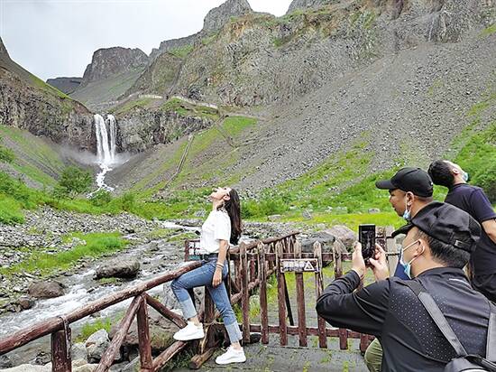 长白瀑布群是松花江源头,也是游客打卡地