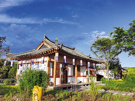 村内落落大方的朝鲜族民屋,承袭了朝鲜族百年古建筑文化,屋顶有着缓和的坡度,中间平行如舟,两头翘立如鹤,进门即是一铺温暖的大炕,坐在炕上,可以感受什么叫“炕大地小”。