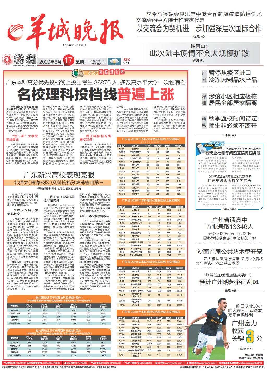 名校理科投档线普遍上涨