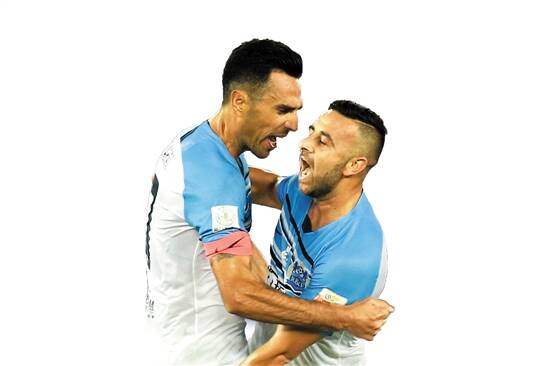 扎哈维(左)和萨巴相拥庆祝 图/视觉中国