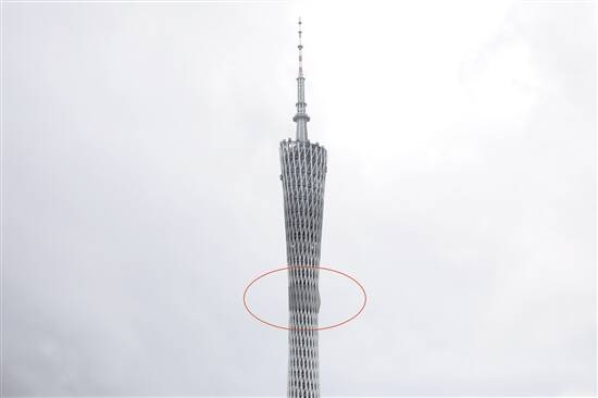 广州塔因有纤美的腰身,又称“小蛮腰”。19日中午,记者从花城广场朝广州塔望去,发现广州塔中部的确出现两个“鼓包”。在广州塔塔底观察,大致朝西面“鼓”起来的两个鼓包还微微会动。
