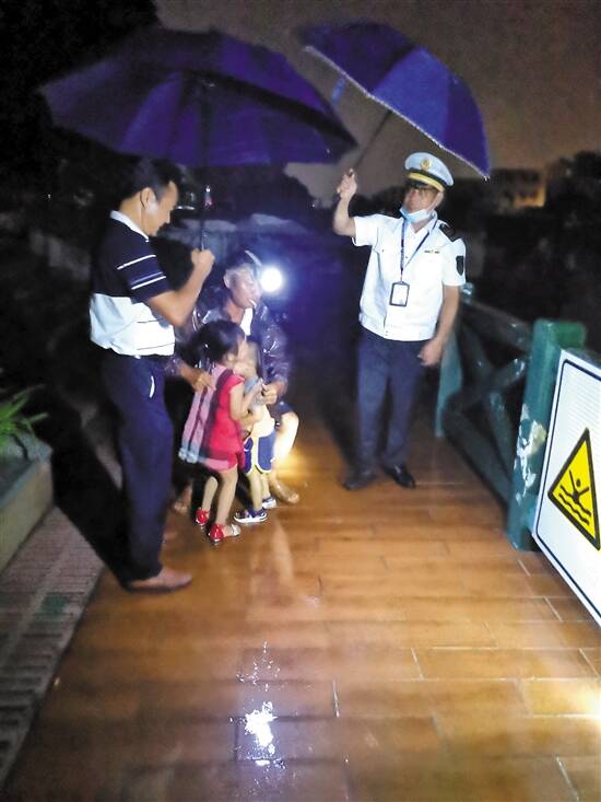“虽然渔港具有一定的避风作用,但在台风橙色预警下人员仍滞留在水面,这是重大安全隐患。”南沙渔政大队现场执法人员会同属地公安派出所警员,登上这些渔船,采取每船必搜喇叭喊话的方式,将26艘渔船上的人员一个个叫醒,将他们送上岸,并带到区内临时应急安置点。直到19日凌晨3点才将最后一名渔船人员送上岸。经渔政大队和公安干警清点,超过50人被请上岸。