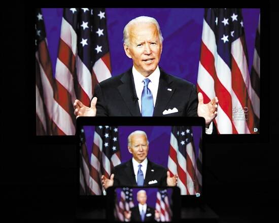 拜登在线出席美国民主党全国代表大会的屏幕画面 新华社发
