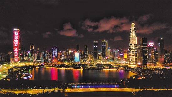 深圳南山人才公园灯光秀 羊城晚报记者 王磊 摄