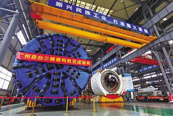 27日,在三模盾构机完成组装仪式上,中铁华隧联合重型装备有限公司总经理李飞透露,“目前下线的这台三模式盾构机属广州首台、国内首台,在国际上也可以算是首台。”