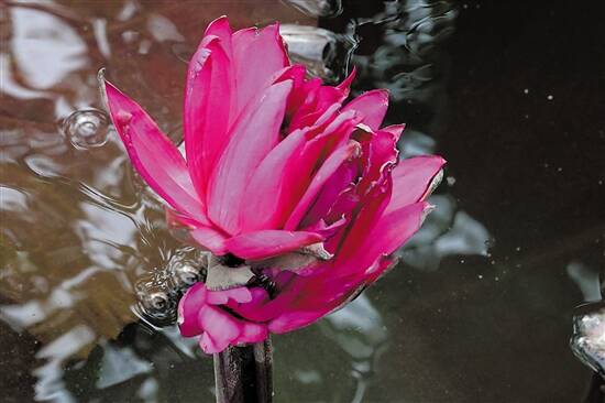 该株四蒂莲的品种名为“红色火焰”,为夜晚开花型热带睡莲 羊城晚报记者 梁喻 通讯员 番宣 摄