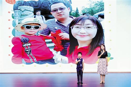 就读于广州开发区第一小学一年级的张天睿今年只有7岁,他和妈妈共同登台讲述了他们一家人在疫情期间所发生的故事,并为所有抗疫英雄朗诵了一首《战疫之歌》。