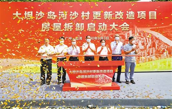骄阳9月,热情似火。在广州荔湾区大坦沙岛北岸沙头顶,十余台挖掘机轰鸣开动,一片热火朝天。9月3日上午,河沙村房屋拆卸工作正式拉开帷幕,首批23栋共1.02万平方米的已签约厂房、村屋有序拆除,为大坦沙国际健康生态岛新一轮开发建设腾挪出2.32万平方米用地空间。作为广州中心城区珠江航道第一大岛,大坦沙岛的更新改造工作再掀新篇章。