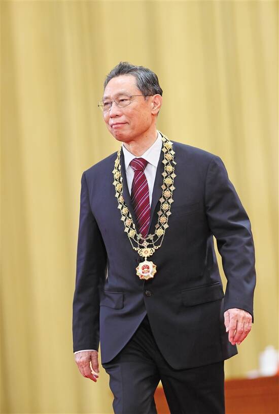 “共和国勋章”颁授词里这样说:在每一次公共卫生事件暴发之际,钟南山都勇担大局,毫无畏惧,化解卫生危机,更难能可贵的是他一心为民,全心全意从百姓的角度解决民生难题,为我国卫生事业的发展贡献了重要的一份力量。