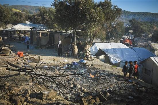 火灾过后的莫里亚难民营 新华社发