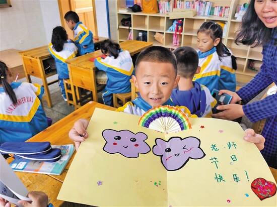 林芝二小一年级四班学生李振汪展示自己的教师节礼物