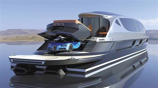 正在上映的电影《信条》中,一艘超级游艇大出风头,各种超豪华的配置真是让人想入非非。而最近另一艘名为Xenos的超级概念游艇的亮相,更让人心潮澎湃,因为它不仅各种室内配置超豪华,其设计公司Lazzarini还特别为它免费配备了一辆价值400万英镑(约人民币3576万元)的布加迪Chiron超级跑车,这可是号称世界上动力最强、速度最快的豪华超级跑车。