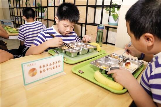黄埔区科峻小学食堂每张餐桌都摆有“光盘行动”“勤俭节约”等宣传卡 通讯员 李建均 摄