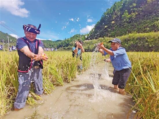 稻田里抓禾花鱼,享受丰收喜悦图/连山融媒体中心