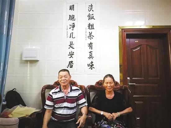 调研组在河头村村民许南生家调研时,看到客厅里挂了好几幅毛笔字,一问才知道全是他自己写的。今年65岁的许南生,早些年一直在珠三角地区务工,后来看到驻村扶贫工作队进来后,村庄焕然一新,于是萌生了回老家养老的想法。2018年,他投了几十万元在村里盖了楼房,与老伴两个人开起了民宿。民宿现在每个月营业额有8000元,许南生说够他们养老了。不忙时,他就练起了毛笔字,“我们农民也要追求精神生活”。