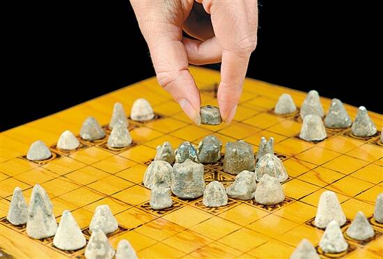 这套被拍卖的维京板棋由37枚棋子组成——12枚炮塔形防守棋、24枚球形进攻棋和一枚有铜材质装饰的国王棋。据说最终它们所拍得的价格达到了预估价的三倍。(文/CC 图/视觉中国)