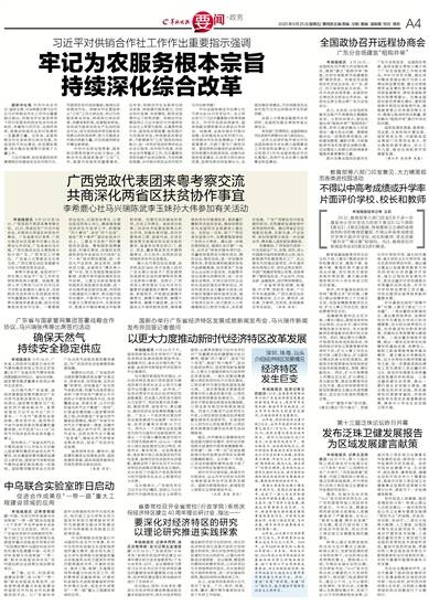 马兴瑞表示,广东始终牢记习近平总书记嘱托,坚持以习近平新时代中国特色社会主义思想为指导,认真贯彻落实习近平总书记对广东重要讲话和重要指示批示精神,增强“四个意识”、坚定“四个自信”、做到“两个维护”,坚决扛起政治责任,坚定贯彻新发展理念,以更大力度推动新时代经济特区改革发展。一是扎实推进粤港澳大湾区和深圳先行示范区建设,以特区新作为更好服务国家发展大局。二是在更高起点更高层次更高目标上推进改革开放,以特区新探索持续激发发展活力。三是坚定不移实施创新驱动发展战略,以特区新优势加快转换发展动能。四是大力推进产业结构优化升级,以特区新担当推动经济高质量发展走在全国前列。五是坚持以人民为中心的发展思想,以特区新实践营造共建共治共享社会治理格局。