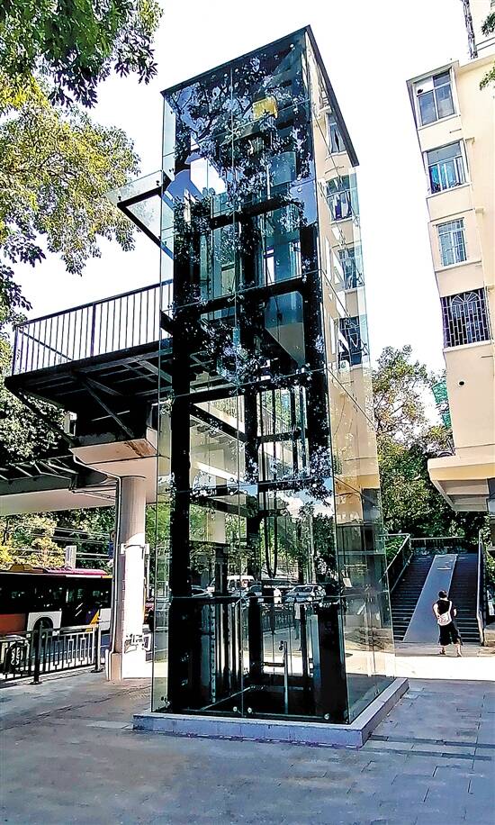 迎宾馆人行天桥加装的电梯今天启用