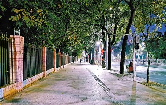 此前,解放路两侧多个路段照明光线不足,在夜间出行该地段的市民经常会有“看不清”的困扰。通过提升工程,夜间的解放路焕然一新。提升工程改造时排查废旧路灯安全隐患,增设路段照明设施,在人行道、人行天桥、高架桥底增设智能照明系统,自动平滑地调节电路电压和电流幅度。夜晚暖色的灯光,亮起一条温暖舒适的回家路。