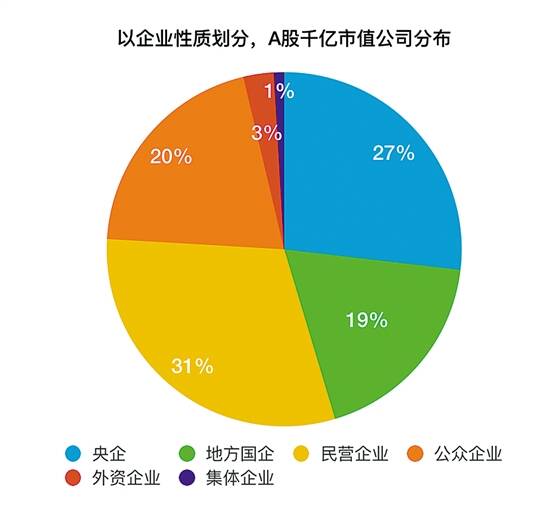 而从企业属性来看,央企、地方国企、民营企业、公众企业、外资企业、集体企业公司数分别为29家、20家、33家、22家、3家、1家。其中,民营企业较2019年末增加15家,已成为A股千亿元市值扩容的主要力量。