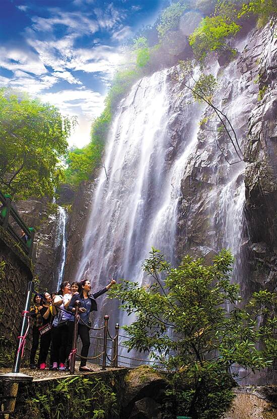 千层峰:砂页岩峰林地貌叠成这座秀峰,可谓兼“黄山之奇、华山之险、庐山之秀、峨嵋之幽、张家界之名峻”于一体,以奇峰、秀水、林海、花艳著称。