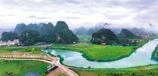 位于清远英德市西南部的九龙镇九龙社区岩口村,地处省地质公园内、英西峰林核心地带,现有村民93户527人,其中党员15人;有水田425亩,旱地216亩,山林1907亩。近年来,该村采取“支部引+党员带+单位帮”的方式,以土地整合连片并折合股份入股英德市国业旅游开发有限公司,携手开发占地1500亩的“洞天仙境”旅游开发项目。