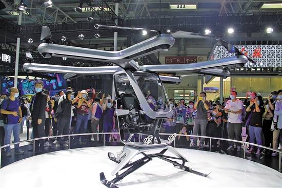 小鹏汽车CEO何小鹏在发布会上首次介绍小鹏本人和小鹏汽车共同投资、控股的航空高科技创新型企业——小鹏汇天。本届车展上,小鹏汇天还展示了超低空飞行汽车的第一代探索版本——旅航者T1。 (刘佳宁)